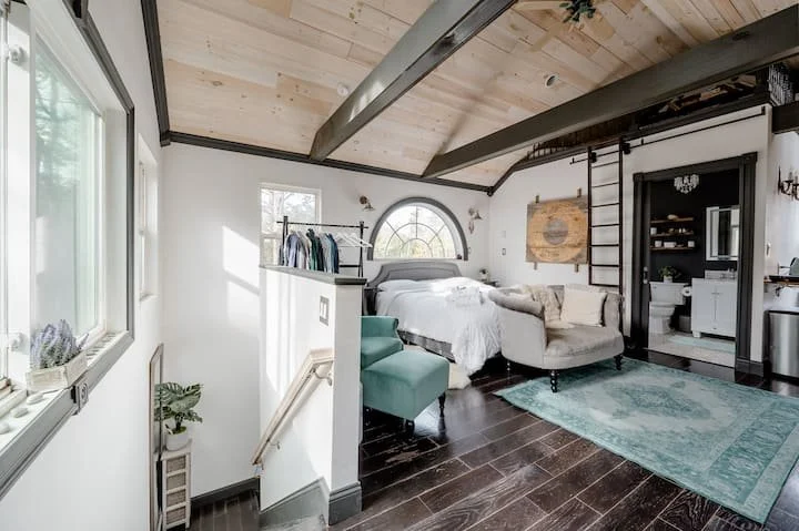 Let the spaciousness of the Round House wrap you with all of it's top of the line amenities and comforts; two person bath tub, cotton sheets, heated floor (in the winter), rain showers, many lighting options to set the perfect mood, and so much more.